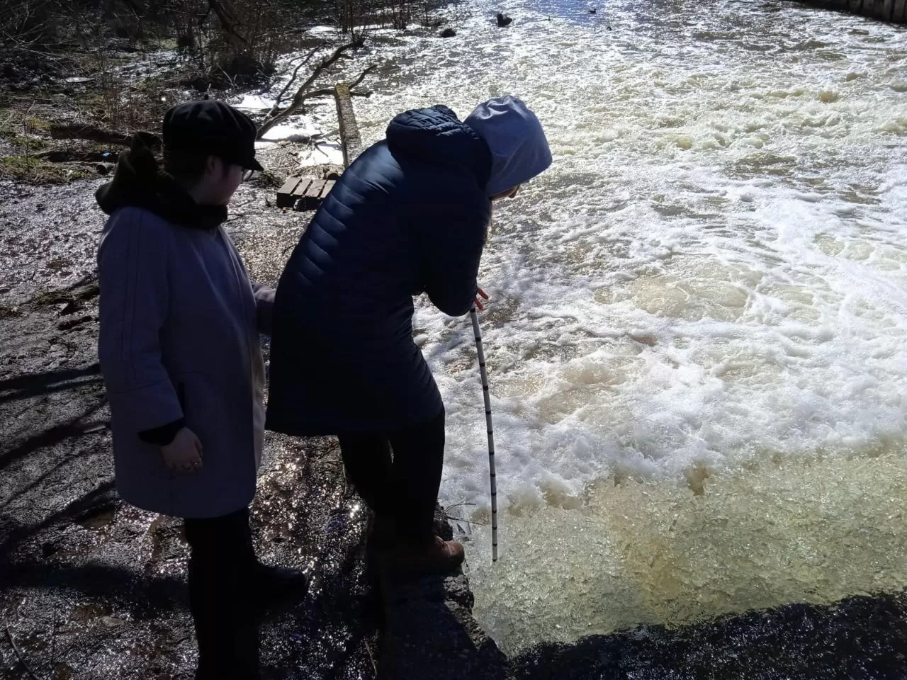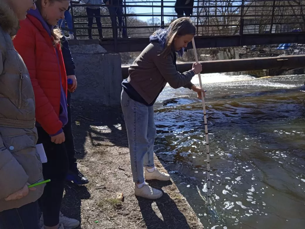 Отбор проб воды на р. Пехорка для исследования в лаборатории ГБПОУ МО «Гидрометеорологический техникум»