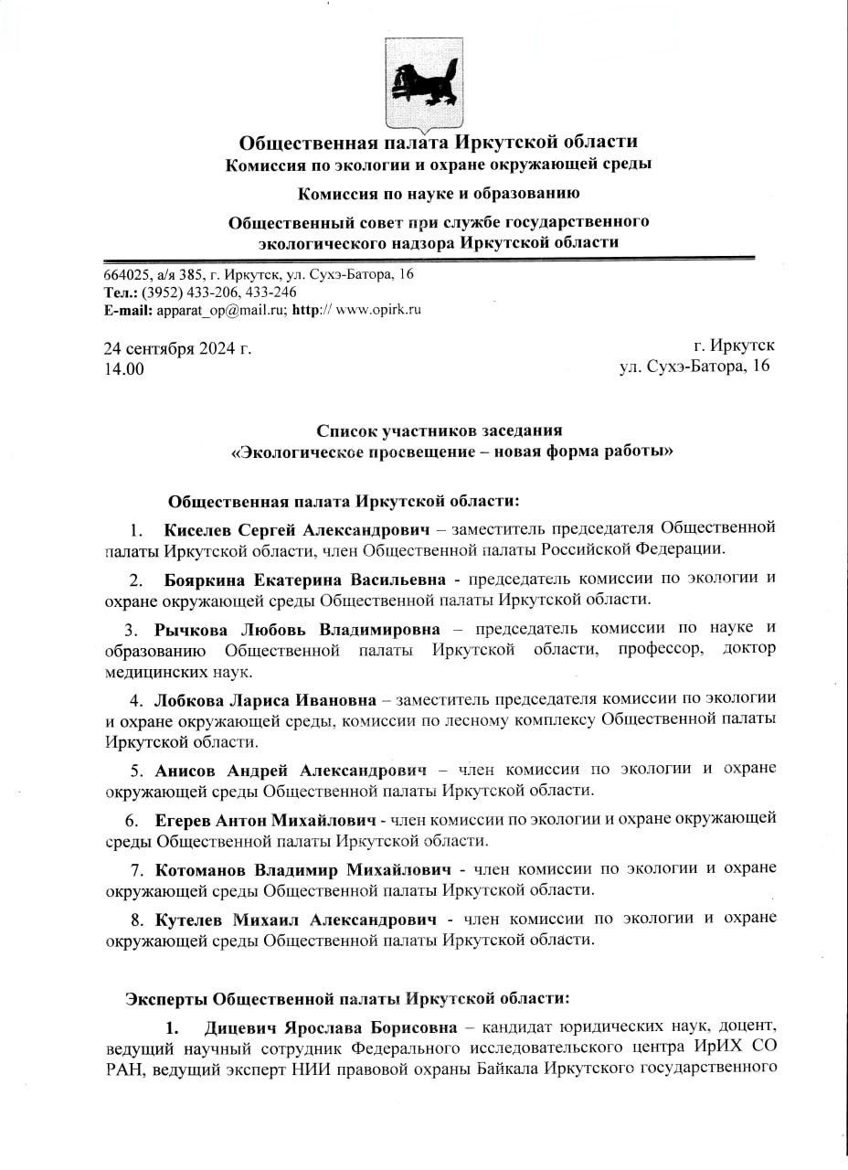 24 сентября в Иркутске состоялось расширенное заседание общественной палаты Иркутской области, в работе которой приняли участие: