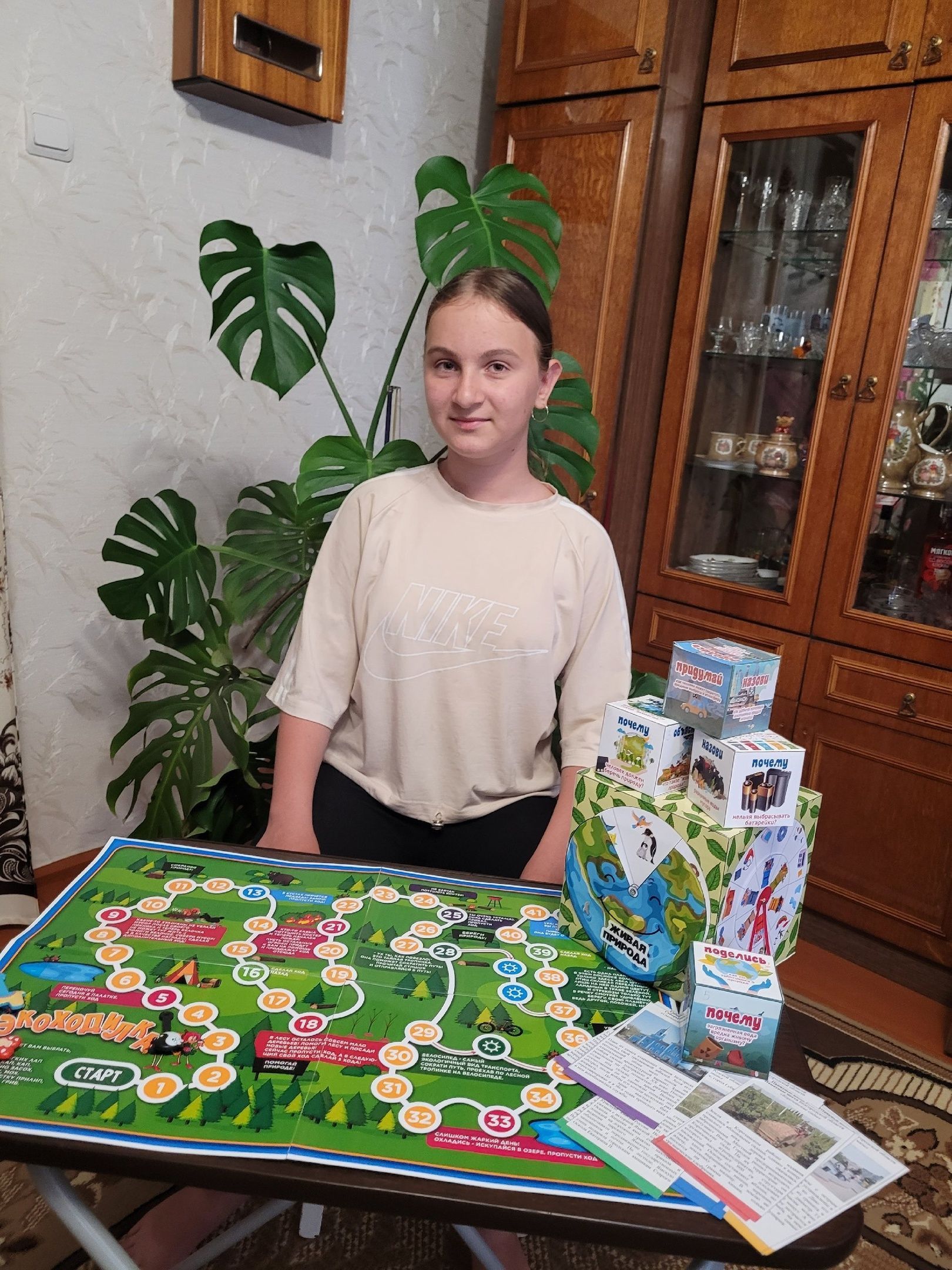 Ученица МБОУ СОШ № 50 Бездетко Мария придумала и создала экологическую игру-ходилку "Эко-шаг" с заданиями, которая поможет сверстникам и неравнодушным к экологии региона людям, узнать больше о природе Белгорода и области, понять, что уже сейчас можно сделать, чтобы проявлять активную заботу о сохранении природы своего родного края. Все кубики с разными заданиями, цвет цифры на поле и цвет природной зоны соответствуют. Бросив кубик игрок не только передвигается по полю, но и выполняет задание на выпавшей стороне кубика.Каждый игрок выбирает себе понравившийся кубик с заданием. Какая цифра выпала на кубике, на столько ходов передвигается фишка. Фишка останавливается на определенном цвете, которому соответствует карточка с одним из интересных фактов Белгородской области. На каком цвете остановился, такого цвета берешь карточку. Читаешь вопрос на кубике и отвечаешь согласно теме на карточке. По итогам игры все игроки узнали много интересного о природе Белгородской области и поняли, что нужно сохранять красоту своего региона. Мария закончила 6 класс на отлично, увлекается экологией и с удовольствием приобщает своих подруг, знакомых и родственников к бережному отношению к окружающей среде!