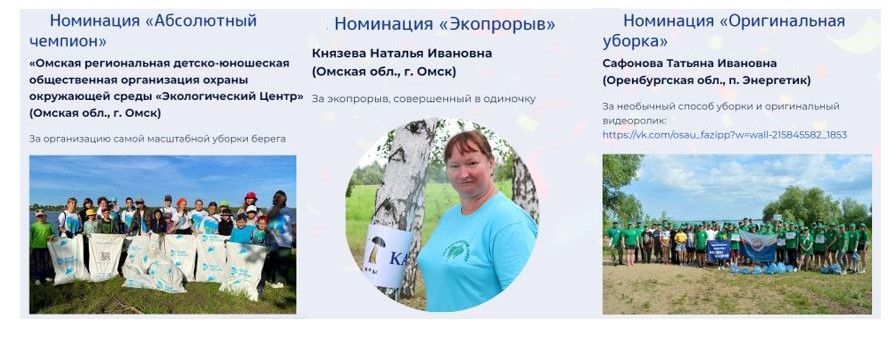 - Номинация «Абсолютный чемпион» - Омская региональная детско-юношеская общественная организация охраны окружающей среды «Экологический Центр»