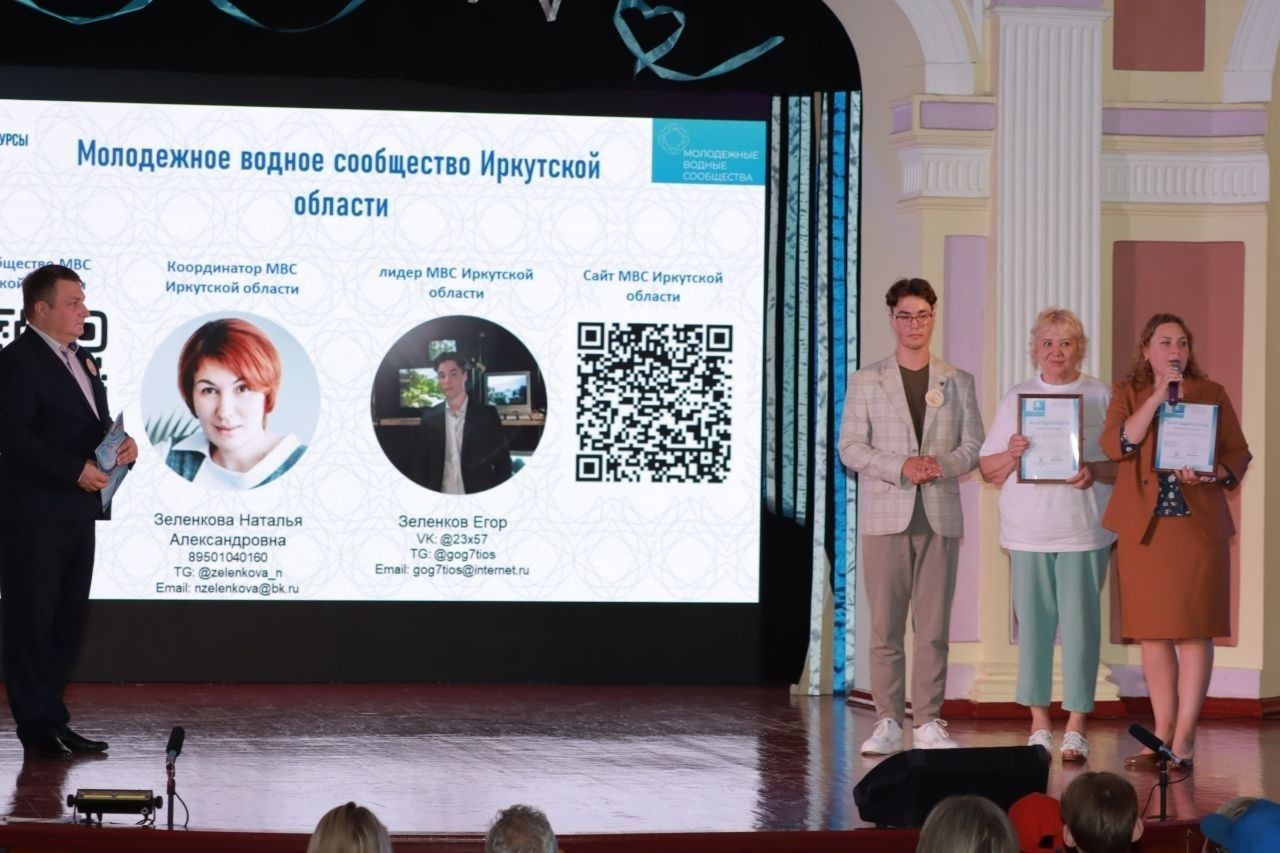 Также Егор вручил благодарности Института консалтинга экологических проектов за поддержку деятельности Молодежного водного сообщества Иркутской области Сафоновой В.С., заместителю начальника отдела экологической безопасности и контроля комитета городского благоустройства департамента городской среды г. Иркутска; Кутимскому А.М., директору Дворца творчества г. Иркутска, почетному работнику сферы образования Российской Федерации; Мирошниченко Г.Е., заслуженному экологу Иркутской области, старшему методисту Дворца творчества г. Иркутска, Зеленковой Н.А., педагогу дополнительно образования Дворца творчества г. Иркутска, координатору МВС Иркутской области.