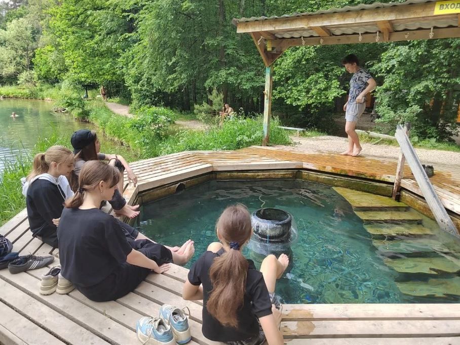 В ходе экскурсии школьники узнали о заболеваниях, которые передают клещи, изучили историю сероводородных прудов, посмотрели, каких обитателей сейчас можно встретить на резванском источнике, пощупали и понюхали водичку, вспомнили о таком веществе, как сероводород, и поговорили о его свойствах.