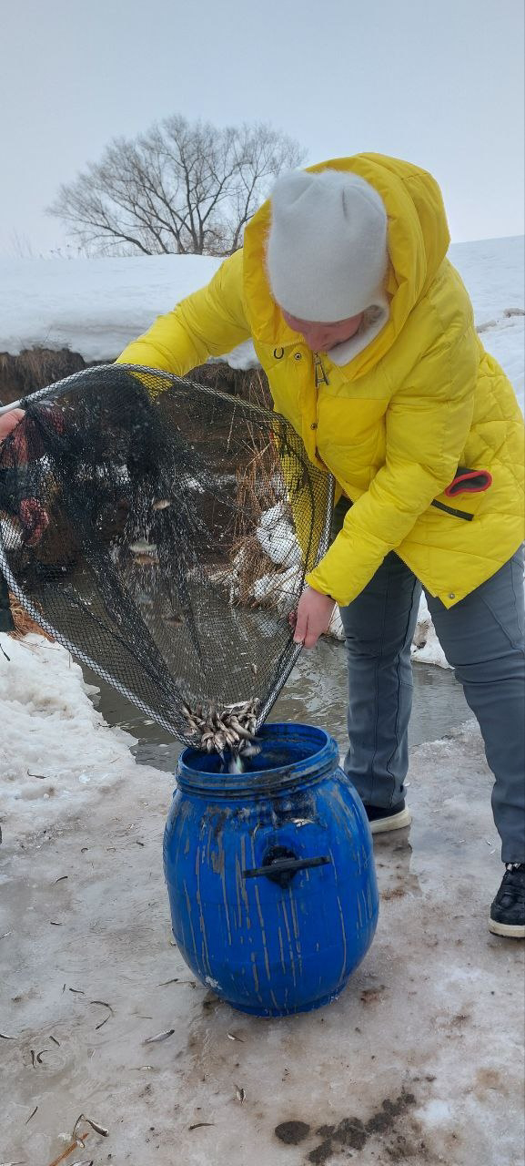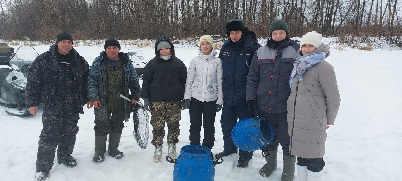 Однако эта экологическая акция в этом году стала особенной - ребята не просто бурили лунки, а спасали мальков из замёрзшего озера Кичигино Сакмарского района, чтобы переправить их в реку Сакмара! Сначала сделали вскрытие родников на озере, для доступа кислорода в водоем. Но так как озеро мелкое и сильно промерзает, то у проруби скопилось большое количество мальков – это кризис перенаселения кислородной точки. Поэтому их, с соблюдением правил, переместили в реку.